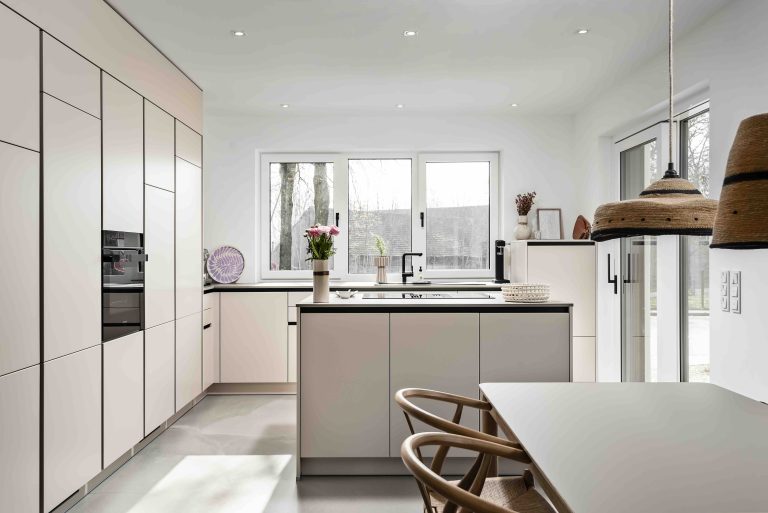 Durch die reduzierte Gestaltung bleibt der Raum zeitlos und flexibel. Verschiedene Wohnstile lassen sich problemlos integrieren und die Küche bleibt auch nach vielen Jahren modern.